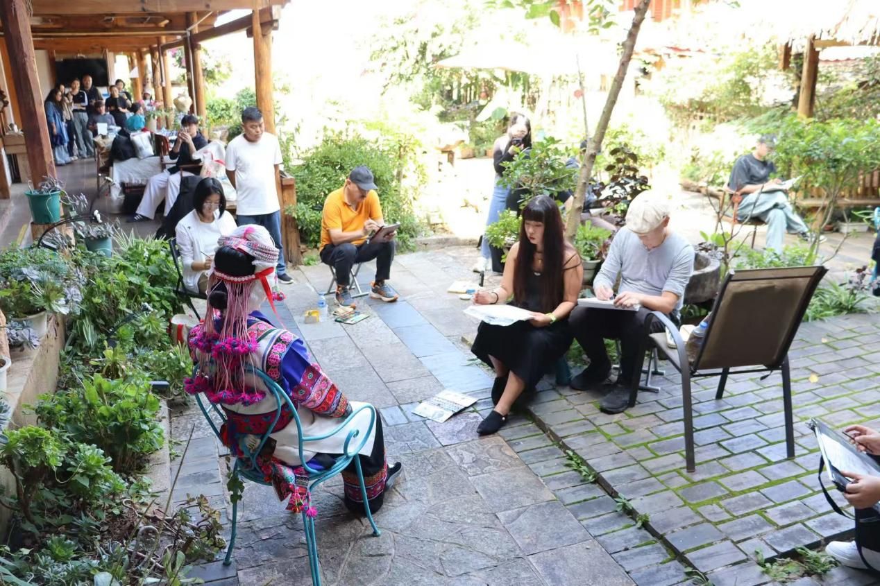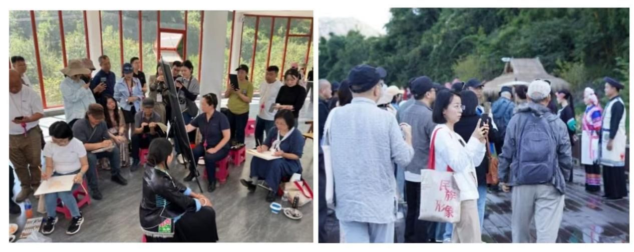 此外,30所艺术院校的90余名师生走进丘北普者黑进行为期5天的民族人物画写生,50余名教师和研究生近距离观摩了来自各大院校画家的创作过程,直观学习其笔墨运用技巧与创作思路,针对自身在“墨色层次把控”“画面构图布局”等方面的问题,获得了针对性指导,深刻体会到“理论指导实践、实践反哺理论”的学术逻辑。