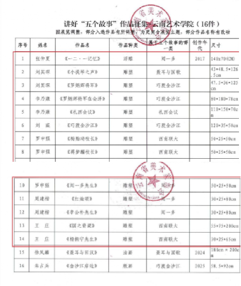 一、在专业课程教学方面,以思政元素与艺术创作融合路径铸牢中华民族共同体意识教育实践价值。通过教学与创作弘扬社会主义核心价值观、中华优秀传统文化、革命文化等思政元素的育人功能,形成专业知识与技能、教育与产出相结合的综合教育教学模式。在云南省美术家协会主办的云南讲好“五个故事”美术书法作品展作品征集中,beat365在线唯一官网登录入选16件美术作品中14件为雕塑专业作品,充分彰显雕塑专业在云南主题雕塑创作中的创作实力与引领。在美术学院庆祝第41个教师节暨课程思政建设师生雕塑作品展中展出作品50件, 持续推动课程思政育人模式改革。
