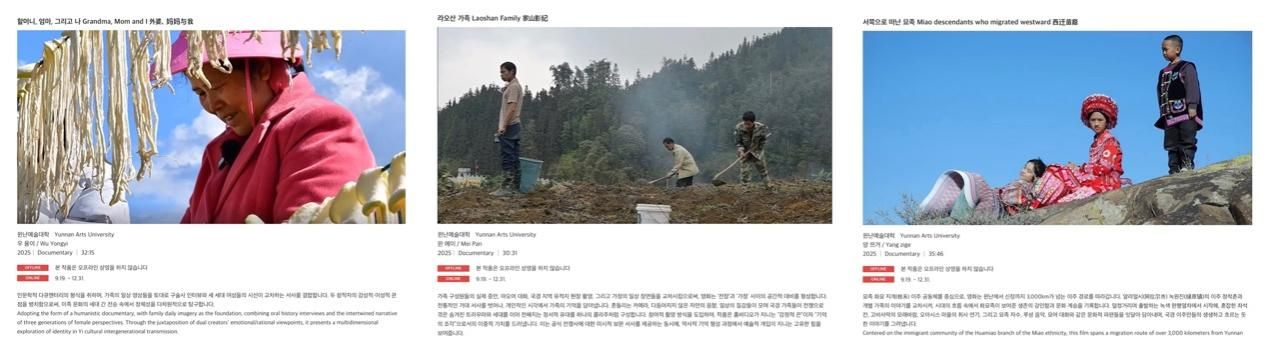 2025年9月,教师李昕指导的3部学生纪录片作品《外婆、妈妈与我》(吴永依、杨丹妮)、《西迁苗裔》(杨子戈)、《家山影纪》(盘妹),入围“韩国京畿道国际学生影展”展映。同时,本科生李静、司雨涵赴韩国参与“第六届亚洲高校纪录片合制计划”,与韩国国立艺术大学、韩国延世大学、泰国朱拉隆功大学、台南国立艺术大学等国际知名艺术院校开展交流实践。李昕老师连续五届担任该项目中方导师,指导多名学生参与这一高水平国际教学创作活动。此外,本年度多名学生作品入选参展“2025第25届平遥国际摄影大展院校展”、“2025长沙国际在地影像艺术节院校展”、“2025第十三届‘一条大河’西双版纳国际影像展”、“第六届国际摄影研讨会暨2025丽水摄影节”。