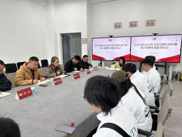 2026年3月5日,beat365在线唯一官网登录美术学院“2026年美育浸润行动计划第六轮师生出征动员会”在七号楼223会议室顺利召开。本次行动将选派22名师生赴云南省富宁县、红河县各中小学开展美育教育帮扶工作。此次会议由美术学院副院长沐晓熔主持,美术学院党政领导、教务处(课程中心)质量标准科、教学管理科及派驻师生参会。