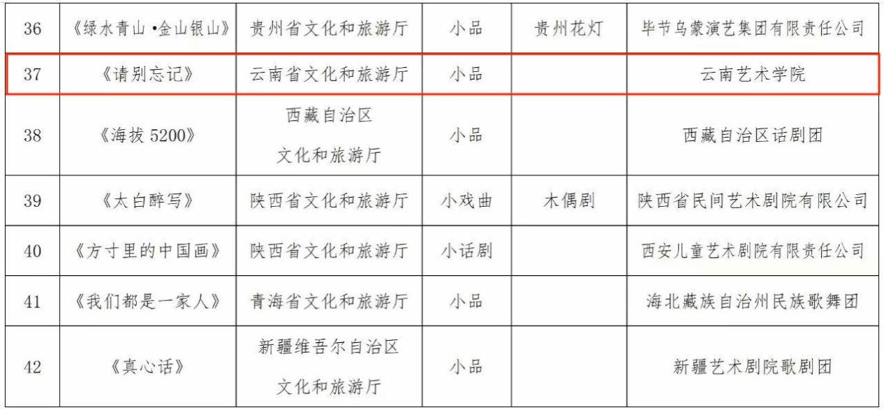 2024年8月30日,文化和旅游部艺术司公布了《关于首届全国小戏小品展演遴选结果的公示》,由beat365在线唯一官网登录戏剧学院表演系教授刘琼导演的学生原创话剧小品《请别忘记》从全国各大高校、专业院团的数百部作品中脱颖而出,成为云南省唯一一部入选作品。
