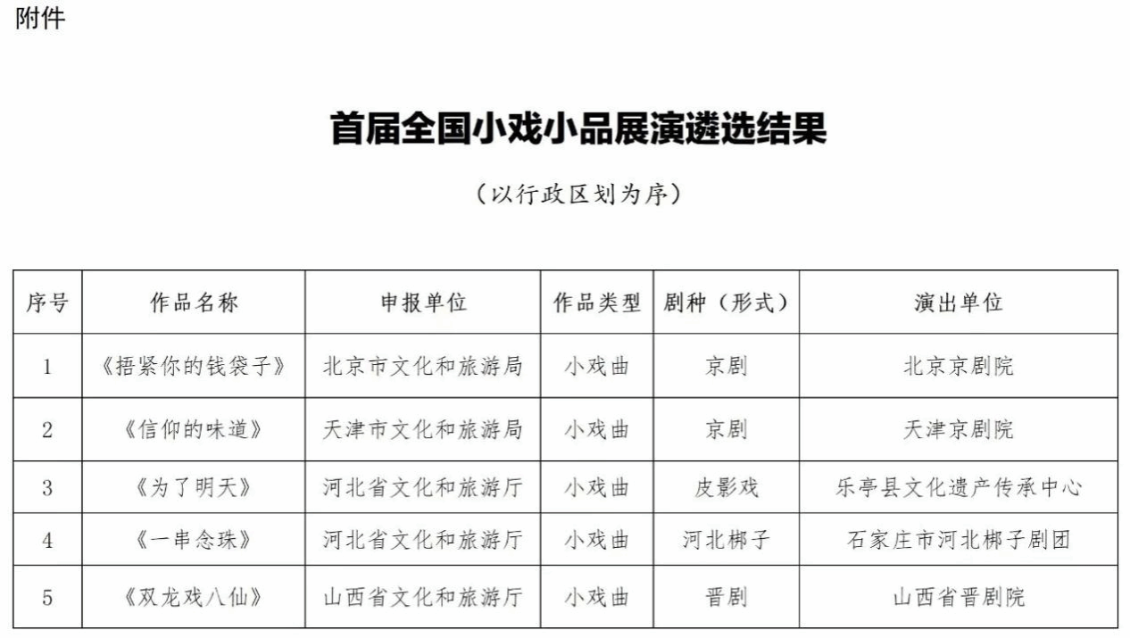 文化和旅游部《关于首届全国小戏小品展演遴选结果的公示》部分入围作品