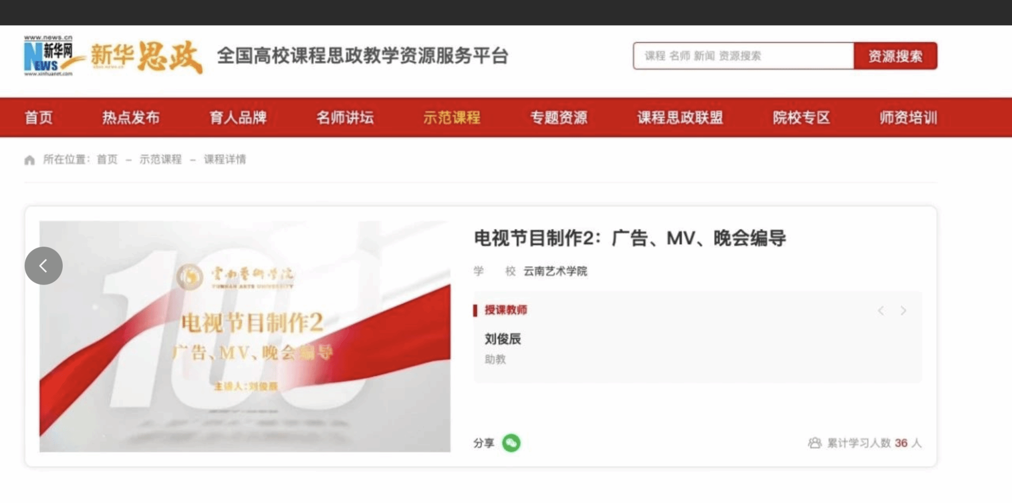 电影电视学院课程思政案例《电视节目制作2:广告、MV、晚会编导》在新华网“新华思政”平台上线