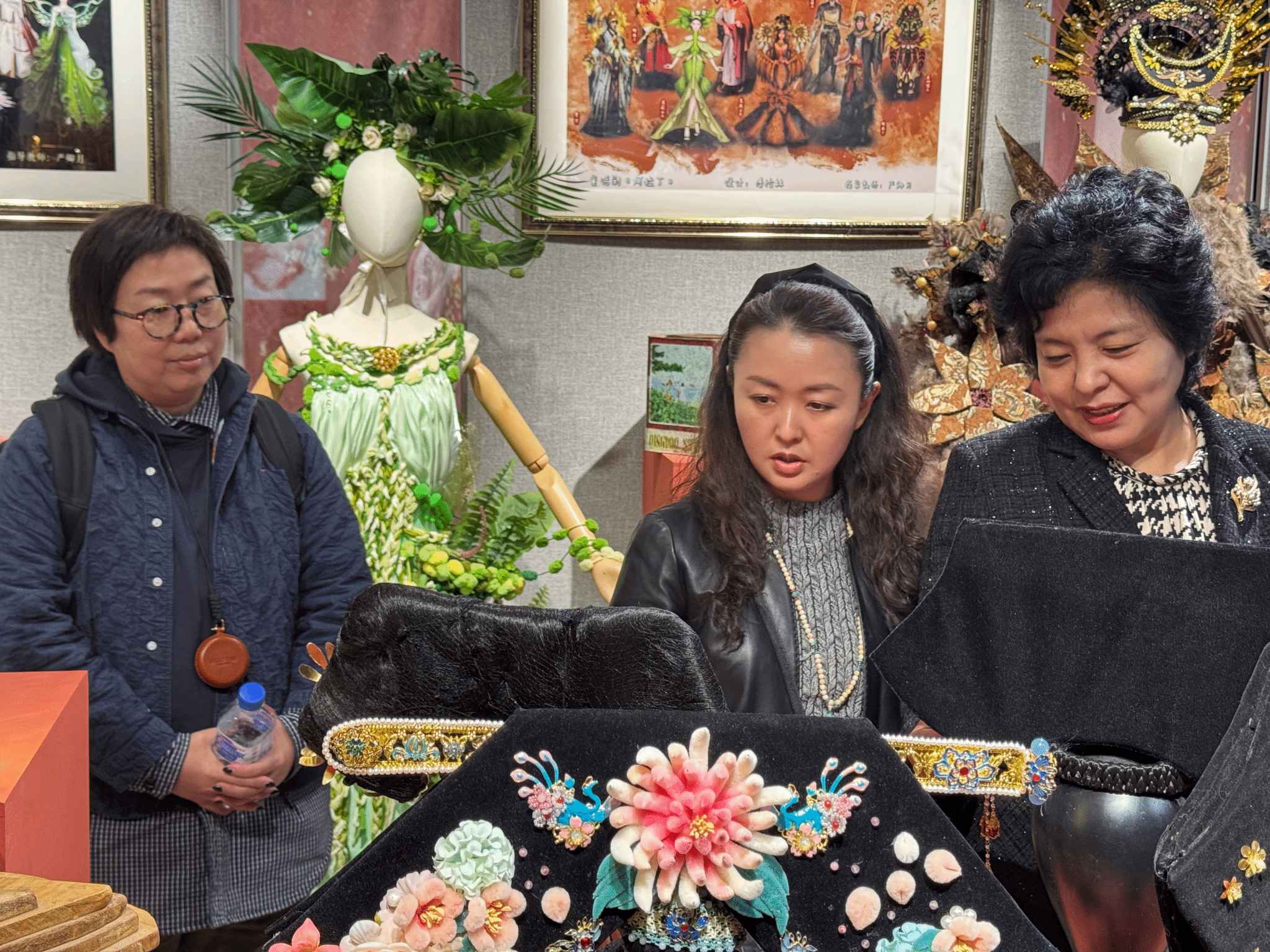 戏剧学院舞美系主任彭玮老师介绍;“学校自八月开始筹备本次展会的参展作品,历时两个月,经过层层筛选,学校共有28件作品获得参展资格,包括6件舞台设计模型作品,3件文物还原制作模型,2件1:1还原道具制作作品,5件服装面料肌理制作服饰,4件剧目人物造型服饰,4件大拉翅造型设计制头饰,4件中国传统发饰设计与制作头饰。‘教学成果示范单位奖’的含金量很高,不仅是对学院系部舞美教学及实践任务的一次全面检阅,更是一次与全国同专业类院校之间相互交流、学习、促进的难得机会。”
