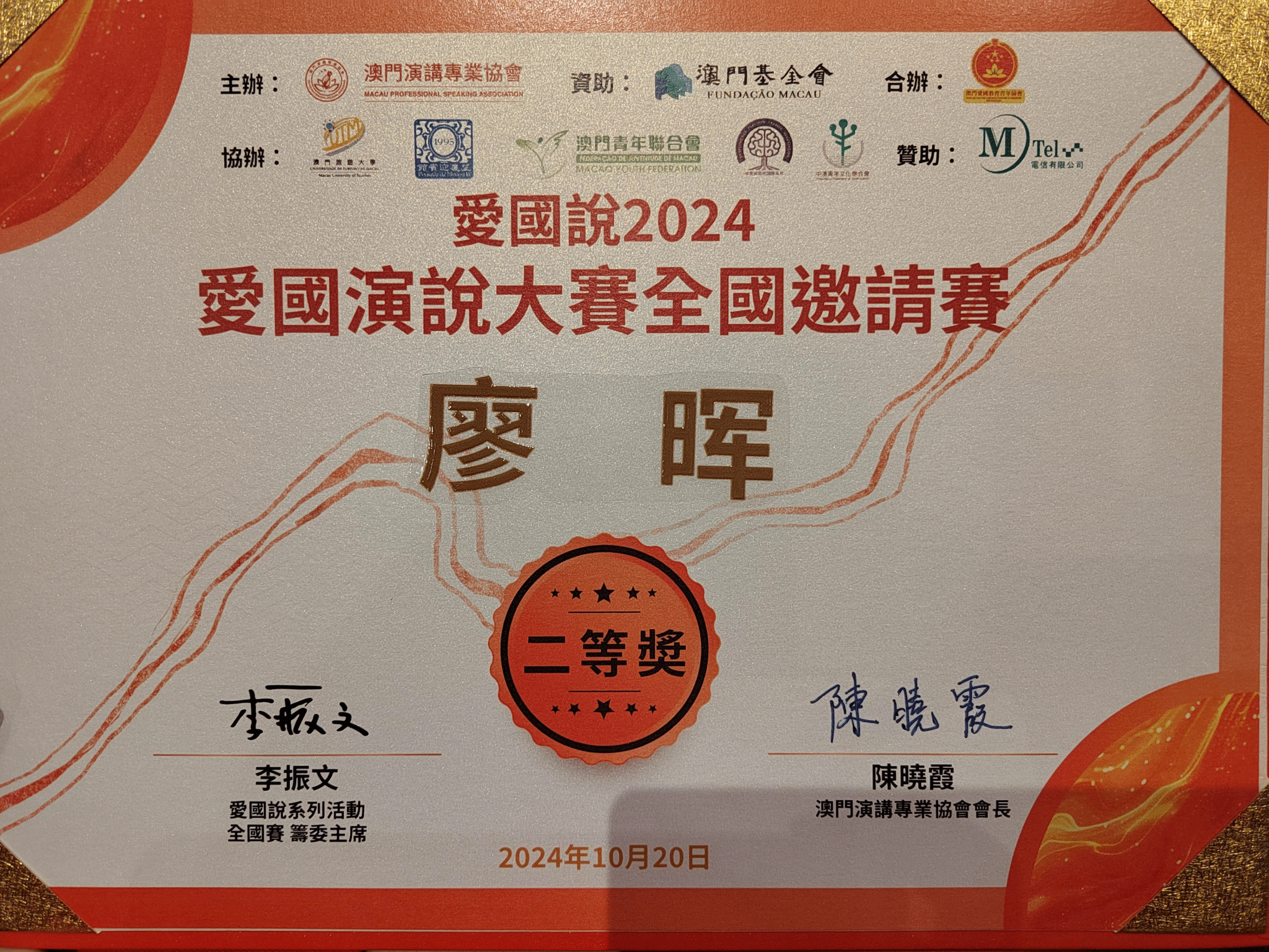 在澳门这座充满魅力的城市,一场以“爱国说”为主题的演讲比赛在澳门旅游大学热烈举行。本次比赛汇聚了全国各地的参赛选手,他们用真挚的情感和激昂的话语,表达着对祖国深深的热爱。本次澳门“爱国说”演讲比赛共分为三个主题“新中国成立75周年”“澳门回归祖国25周年”以及“国家安全观提出10周年”