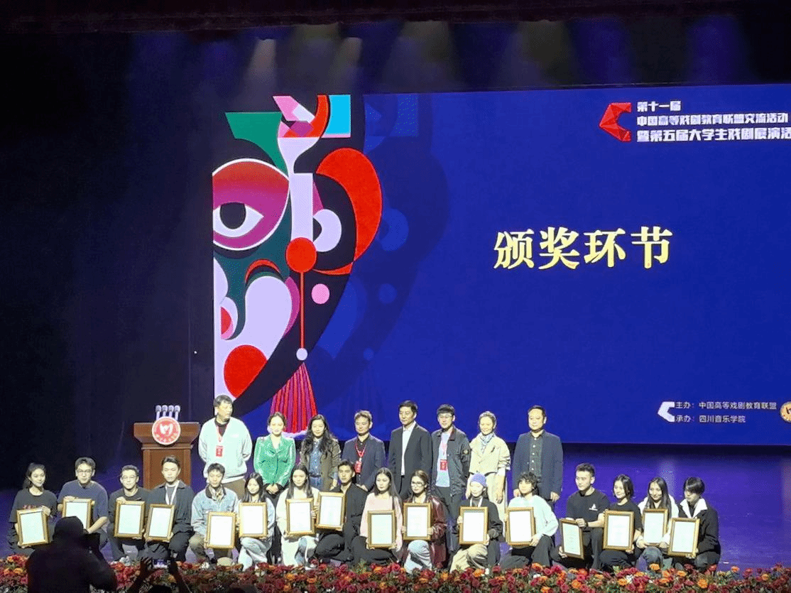 11 月 10 日下午,四川音乐学院党委常委、副院长牟文虎主持了本次活动的闭幕式。随后,中国高等戏剧教育联盟办公室主任田旭宣布本届展演获奖名单,并为获奖剧目及演员进行颁奖。