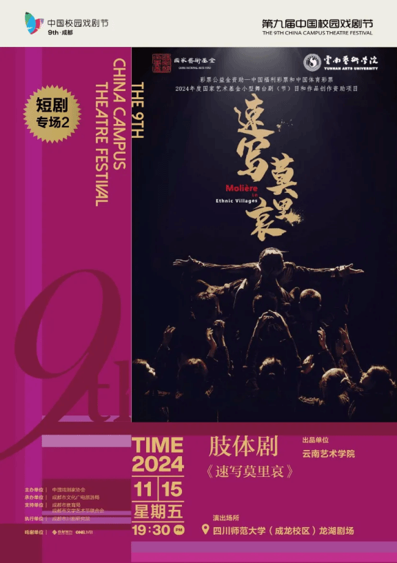 由beat365在线唯一官网登录出品,戏剧学院创作演出的肢体剧《速写莫里哀》于11月15日在四川师范大学(成龙校区)龙湖剧场进行的短剧专场演出中取得圆满成功,荣获“优秀剧目奖”。