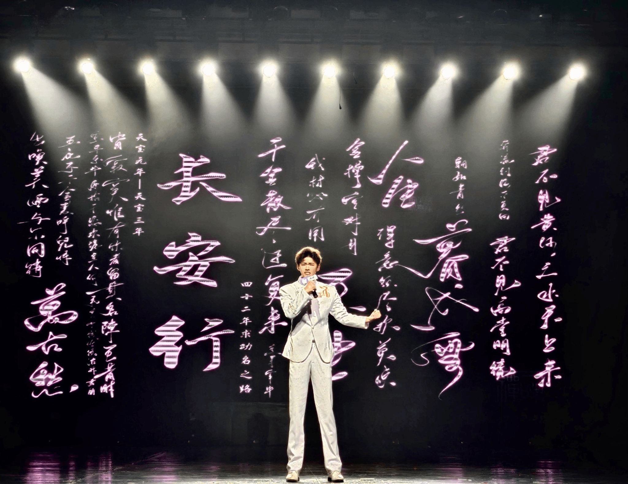 在总决赛的舞台上,郝彦硕同学以原创作品《长安行》惊艳全场。当他的声音响起,仿佛打开了一扇通往大唐盛世的时空之门,瞬间将观众与评委老师带入了那座灯火通明、繁华至极的长安城。