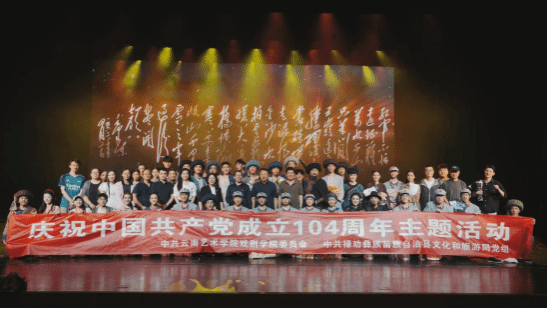 作为戏剧学院党委与禄劝县文旅局党组深入学习党史的主题活动,党员同志与演职员合影
