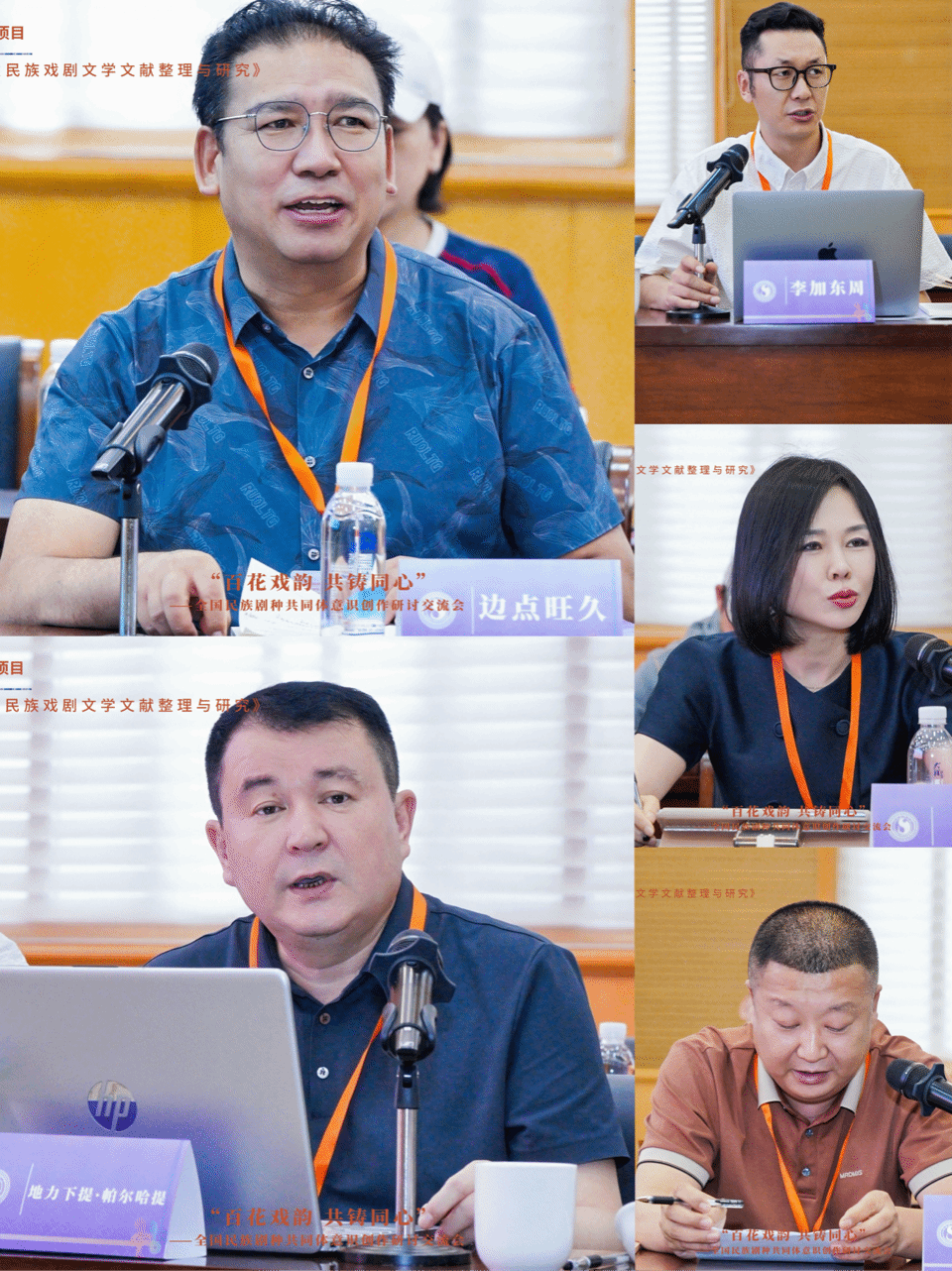 省外院团代表率先发言。西藏藏族自治区藏剧团团长边点旺久、青海省黄南州热贡艺术研究院院长仁青加、青海省藏剧团副团长李加东周分别介绍了藏戏近些年的创作与发展情况;新疆维吾尔自治区艺术剧院木卡姆(维剧)艺术团团长地力下提·帕尔哈提对木卡姆和维剧的保护传承提出了新的看法;吉林省松原市满族新城戏传承保护中心副主任奚望介绍了满族新城戏的发展和面临的挑战;吉林省延边朝鲜族自治州歌舞团副团长罗松花讲述了朝鲜唱剧的发展历程;内蒙古自治区鄂尔多斯市伊金霍洛旗乌兰牧骑编剧闫鹏飞和内蒙古艺术剧院蒙古剧艺术团编剧图力古尔,分别介绍了不同区域蒙古剧的历史特色和创作历程;贵州省侗戏文化研究会会长杨俊结合自身创作研究经历,介绍了贵州侗戏创作的经验。