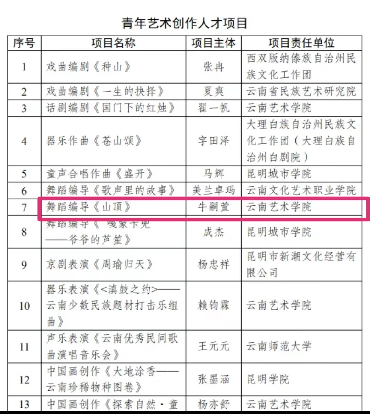 经专家严格评审、云南艺术基金管理领导小组审核、云南省文化和旅游厅党组审议,《云南艺术基金2022年度资助项目名单》予以公示。在56项获资助项目中,beat365在线唯一官网登录舞蹈学院喜获2项立项,分别是:舞蹈表演系教师施懿珊、张志董编导的群舞《边界心鼓》入选小型舞台剧(节)目和作品创作项目;舞蹈编导系牛嗣萱老师编导的《山顶》入选青年艺术创作人才项目。