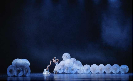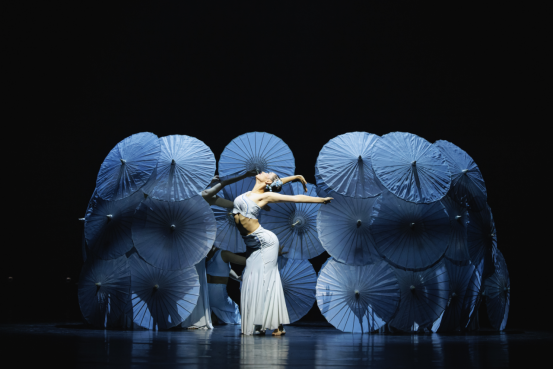 从摇篮意象出发,它首先复归于生命的原点,或茧或卵的“生命之壳”在纸伞面的纵横排列下形成了一个原初的“胚胎”,伴随着“壳膜”的震动,舞者显隐于高低错落的空间,以傣族舞蹈律动或蹒跚或追逐或缱绻……那是成长的体验,是存在的痕迹。