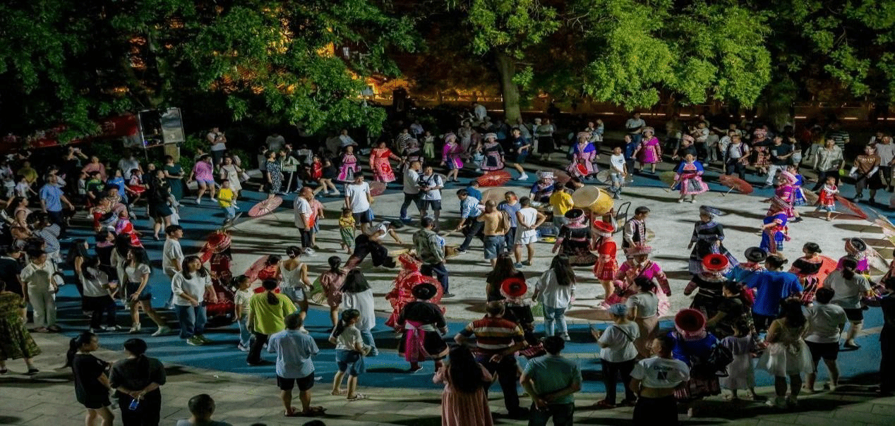 “三下乡”成员们在石榴籽广场与苗族同胞们一起跳苗族传统鼓舞,开展“打糍粑”等特色民俗活动,各民族同胞在一起载歌载舞,气氛欢快又热烈。
