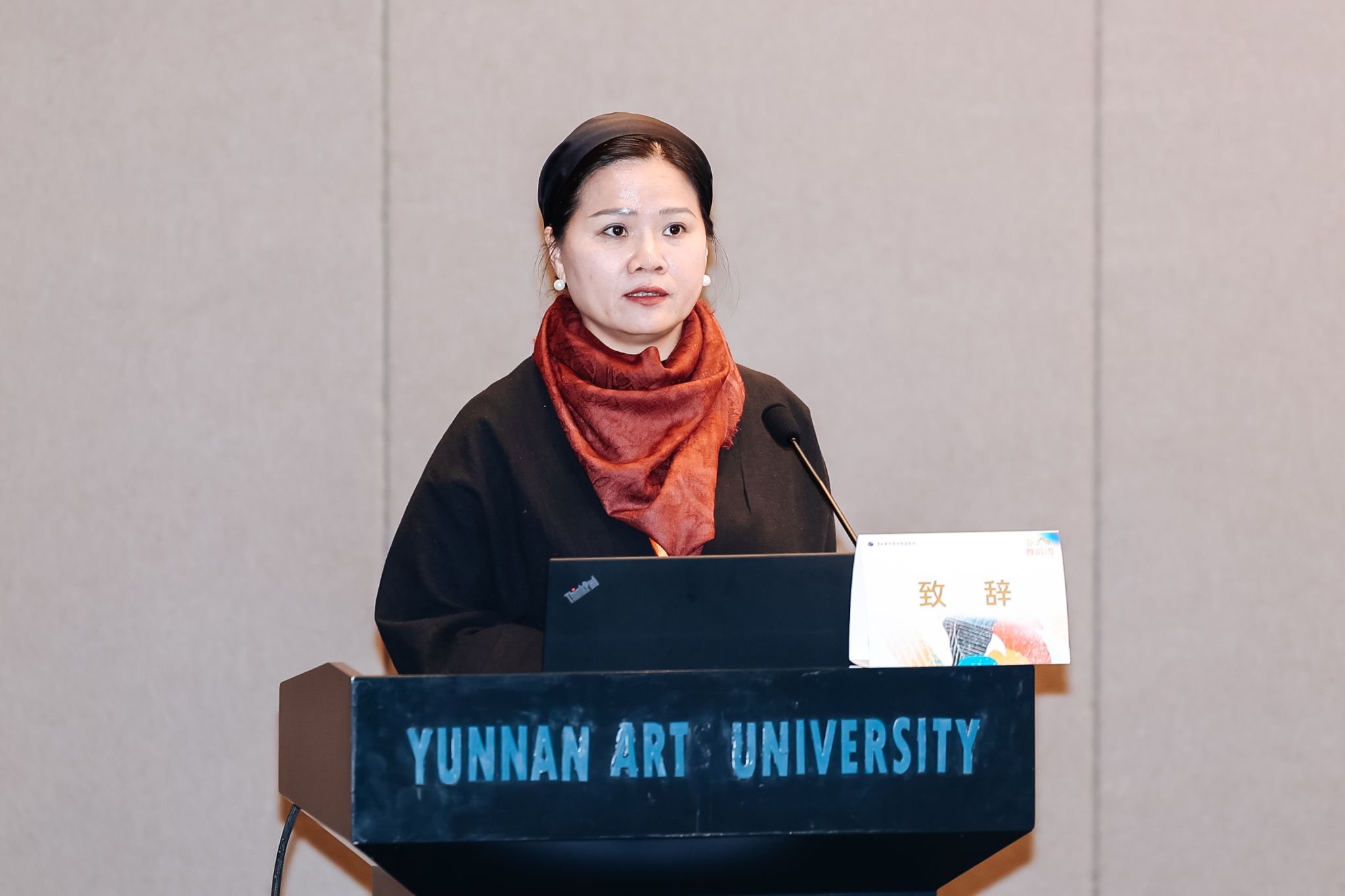 广西艺术学院舞蹈学院院长、附属中等艺术学校校长韦金玲发言