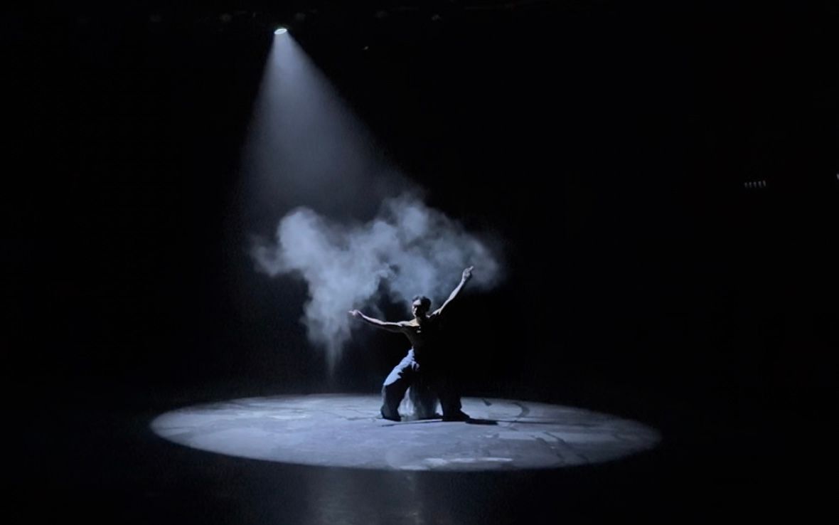 作品简介:以唐代诗词意境为灵感,通过古典舞与粉尘道具的创新结合,演绎“微尘承天地”的东方哲思。舞者以身韵动律模拟尘埃飘零,配合灯光与古琴音效,构建“紫陌红尘拂面来”的诗意空间,隐喻个体在历史洪流中的坚韧与觉醒,荣获大赛民族舞独舞单元“最优秀奖”。