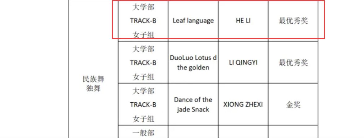 学院近年来持续推动舞蹈作品的创作与创新,此次获奖作品中,《叶语》提炼傣族优美的韵律;《紫陌纤尘》以舞蹈为载体传达诗意想象;《度》创新运用生活道具进行情感叙事;均体现“以舞载道”的创作理念。未来,学院将继续深耕舞蹈艺术创新,在国际舞台传递中国文化魅力。